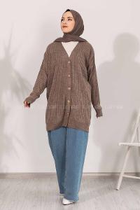 Lamelif Düğme Detaylı Hırka Acı Kahve