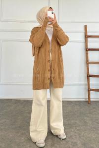 Modalamelif Düz Renk Fitilli Hırka Sütlü Kahve