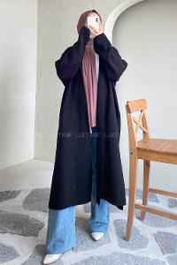 Lamelif Cep Detaylı Tesettür Hırka Siyah