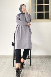 Lamelif Manşeti Biyeli Tunik Acı Kahve