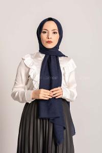 Modalamelif Efekli Zikzak Desen Pamuk Şal Lacivert
