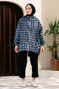 Boydan Fermuarlı Gizli Cepli Kapüşonlu Kap