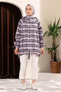 Boydan Fermuarlı Gizli Cepli Kapüşonlu Kap