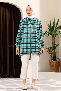 Boydan Fermuarlı Gizli Cepli Kapüşonlu Kap