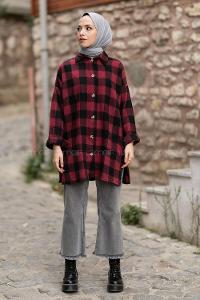 Lamelif Oversize Gömlek Bordo