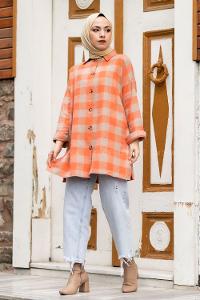 Modalamelif Ekose Desen Yırtmaçlı Gömlek Turuncu