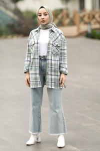 Modalamelif Ekose Desenli Çift Cepli Oduncu Gömlek Çağla Yeşili