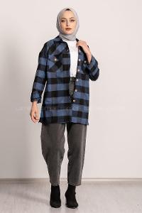 Modalamelif Ekose Desenli Çift Cepli Oduncu Gömlek Lacivert