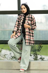 Modalamelif Ekose Desenli Çift Cepli Oduncu Gömlek Siyah-Kırmızı