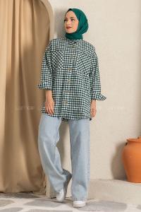 Lamelif Kol Detaylı Gömlek Zümrüt