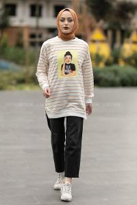 Modalamelif Ele Nao Girl Baskılı Çizgi Desenli Sweat Sütlükahve