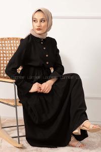 Lamelif Yarım Düğme Detaylı Terikoton Elbise Siyah
