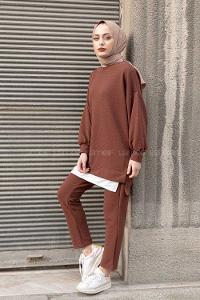Modalamelif Eteği Garnili Balon Kol İkili Takım Acı Kahve