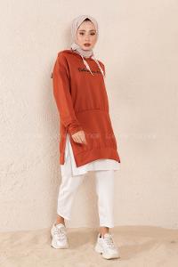Modalamelif Eteği Garnili Dreams Tunik Koyu Kiremit