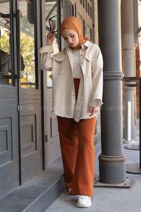 Modalamelif Eteği Püsküllü Kot Ceket Taş