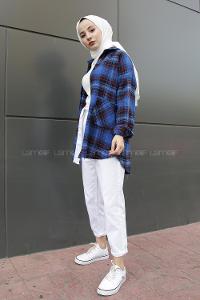Lamelif Omuz Vatka Detaylı Tesettür Gömlek Saks Mavisi