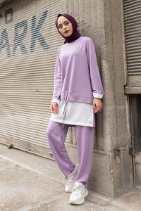 Modalamelif Etek Garnili İkili Takım Lila