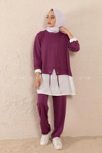 Lamelif Düğme Detaylı İkili Tesettür Takım Bordo