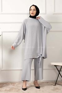 Modalamelif Etek Ucu Bağlamalı İkili Takım Gri