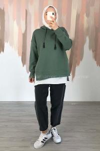 Modalamelif Etek Ucu Garnili Kapüşon Detaylı Yırtmaçlı Anabelle Sweat Çağla Yeşili
