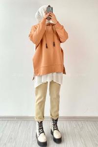 Modalamelif Etek Ucu Garnili Kapüşon Detaylı Yırtmaçlı Anabelle Sweat Sütlükahve