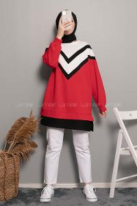 Lamelif Balon Kol Yaka Ve Etek Ucu Manşetli Bol Sweat Kırmızı
