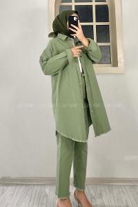 Lamelif Yaka Detay İkili Tesettür Takım Haki