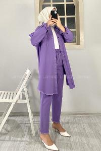 Modalamelif Etek Ucu Püsküllü Ceket Pantolon Takım Eflatun