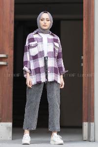 Modalamelif Etek Ucu Püsküllü Ekose Gömlek Mor