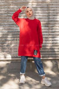 Modalamelif Etek Ucu Renkli Etiketli Tunik Kırmızı