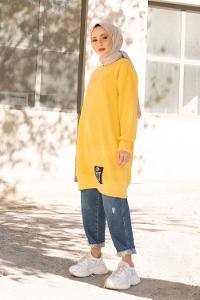Modalamelif Etek Ucu Renkli Etiketli Tunik Sarı