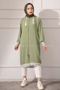 Modalamelif Etek Ucu Şeritli Kapşonlu Tunik Çağla Yeşili