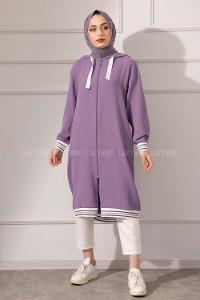 Modalamelif Etek Ucu Şeritli Kapşonlu Tunik Eflatun