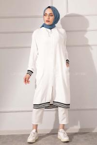 Modalamelif Etek Ucu Şeritli Kapşonlu Tunik Ekru