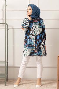 Lamelif Omuz Vatka Detaylı Tesettür Gömlek Bebe Mavisi