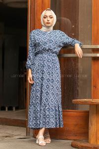 Lamelif Bel Büzgülü Tesettür Elbise Lacivert