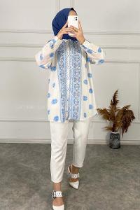 Modalamelif Etnik Desenli Salaş Gömlek Açık Mavi