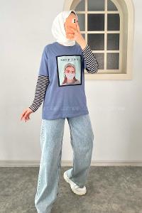 Modalamelif Face Mask Grils Oversize T-Shirt Mavi