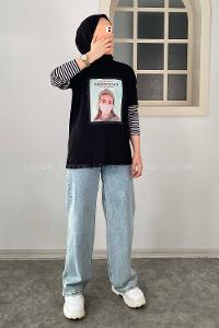 Modalamelif Face Mask Grils Oversize T-Shirt Siyah