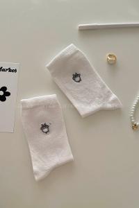 nakış işlemeli, beyaz renk, pamuklu soket çorap.