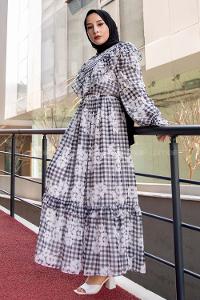 Lamelif Toka Detaylı Tesettür Elbise Siyah