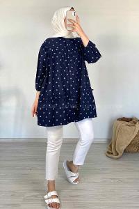 Modalamelif Fırfırlı Desenli Gömlek Lacivert