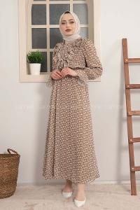 Modalamelif Fırfırlı Şifon Elbise Sütlü Kahve