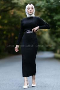 Lamelif Dilvin Bisiklet Yaka Kol Ortası Droplu Kazak Siyah