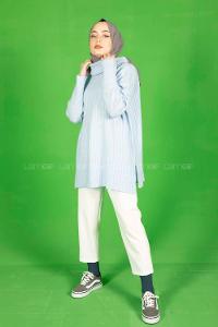 Modalamelif Fitilli Boğazlı Triko Kazak Bebe Mavisi
