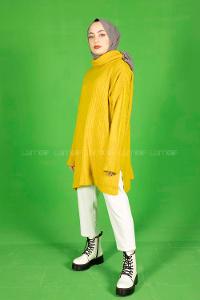 Modalamelif Fitilli Boğazlı Triko Kazak Hardal Sarısı