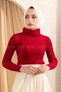 Modalamelif Fitilli Boğazlı Triko Kazak Kırmızı