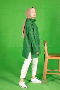Modalamelif Fitilli Boğazlı Triko Kazak Yeşil