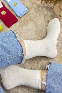 Lamelif Kalp Nakış İşlemeli Beyaz Tenis Çorap