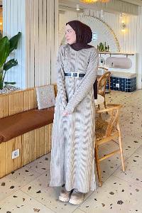 Lamelif Elica Tesettür Elbise Taş Rengi